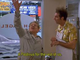 For those of you who aren’t familiar with the holiday, Festivus derives from an episode of the television show “Seinfeld” titled “The Strike” (Season 9, Episode 10) where we are introduced to a holiday that George Constanza’s father Frank (Jerry Stiller) invented to combat the rabid consumerism that overtakes the Christmas season each year.