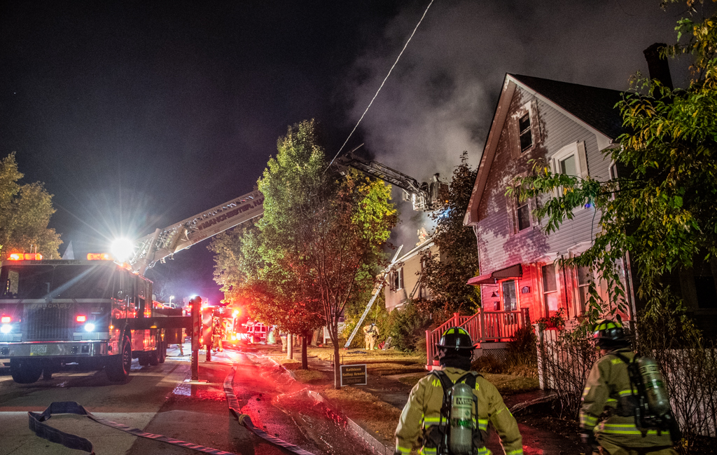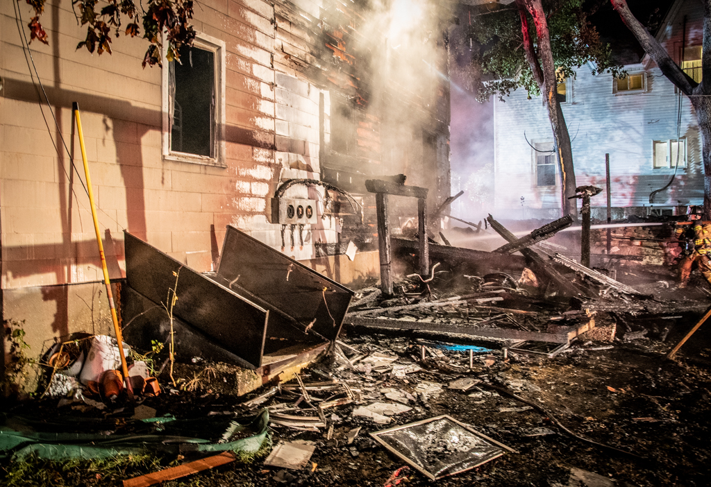 An occupant of the home called 911ย at 3:45 a.m. to report fire at the two-story two-family home, which was fully ablaze when Engine 5 from Webster Street station arrived โ all but two fire stations from across the city were activated for the two-alarm fire.