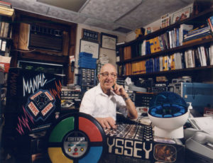 The war sparked Baerโ€™s interest in electronics, and he earned a degree in television engineering โ€“ launching what would become a 60 year career in video game technology. After Joining Sanders Associates in Nashua (now BAE Systems) in the mid 1950โ€™s, he and two other engineers โ€“ Bill Harrison and Bill Rausch โ€“ developed what would become the first home game console, the Magnavox Odyssey, which hit the commercial market in 1972. Baer is credited with developing the idea of playing games on a television screen around 1966.