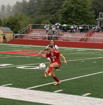 Trinity’s best stretch of offense came in the final two minutes. Morris and Sydney Demers helped generate pressure, maintaining ball possession and keeping the Saints back on their heels. The ball wound up in the vicinity of junior Kenzie Goldstien, who fought for possession, got a clean look and ripped a blast from around 24 yards that sailed over the crossbar by less than a foot.