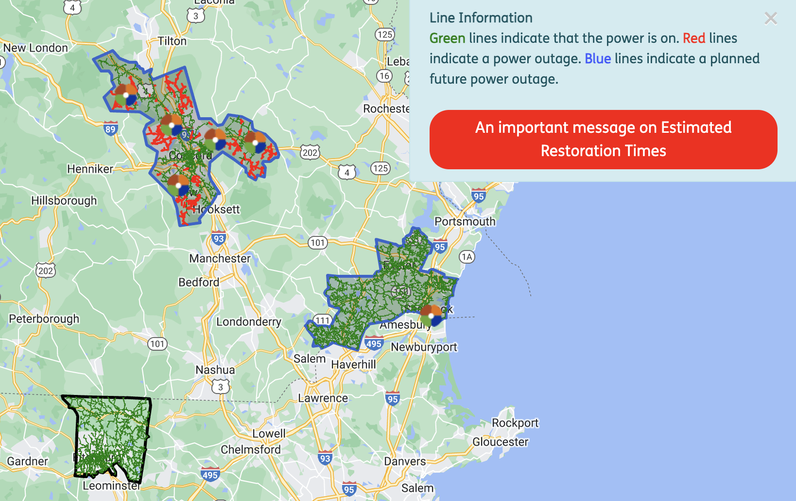 Unitil’s outage map at Unitil.com/map is being updated regularly with estimated restoration times for specific outages throughout the region as crews work though the area. Should new outages occur, the map will update in real time with estimated restoration times for these issues as well as they become available.