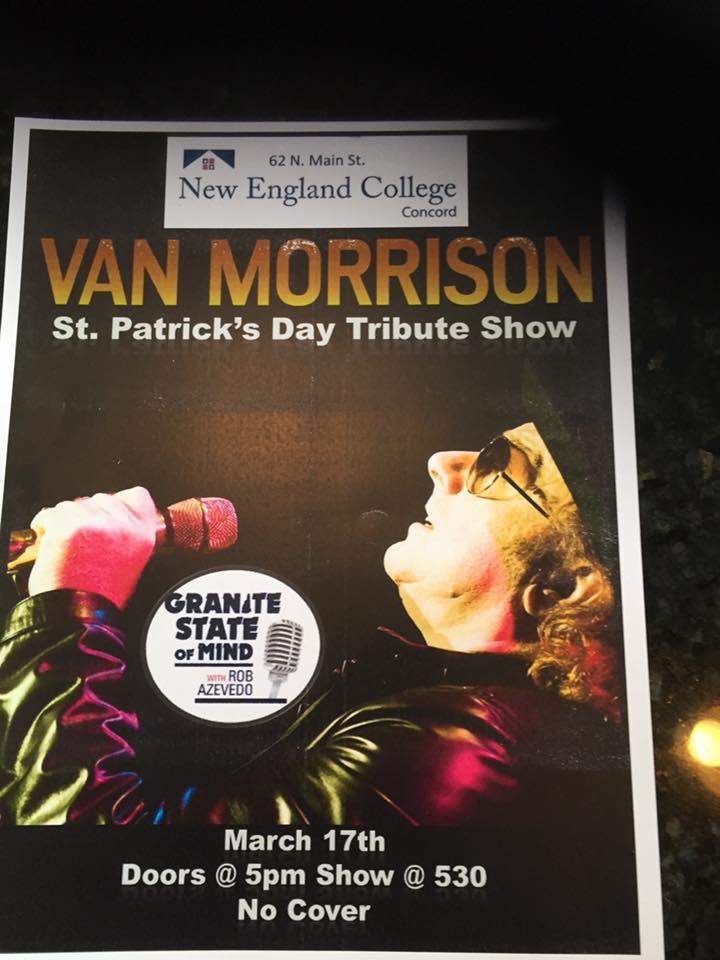 So are we, Van. That’s why this Saturday – St. Patrick’s Day – GSM is hosting its monthly tribute series at New England College in Concord where we will raise a pint of Guinness to the works of Van Morrison as a half-dozen artists bare their souls to sing his songs.