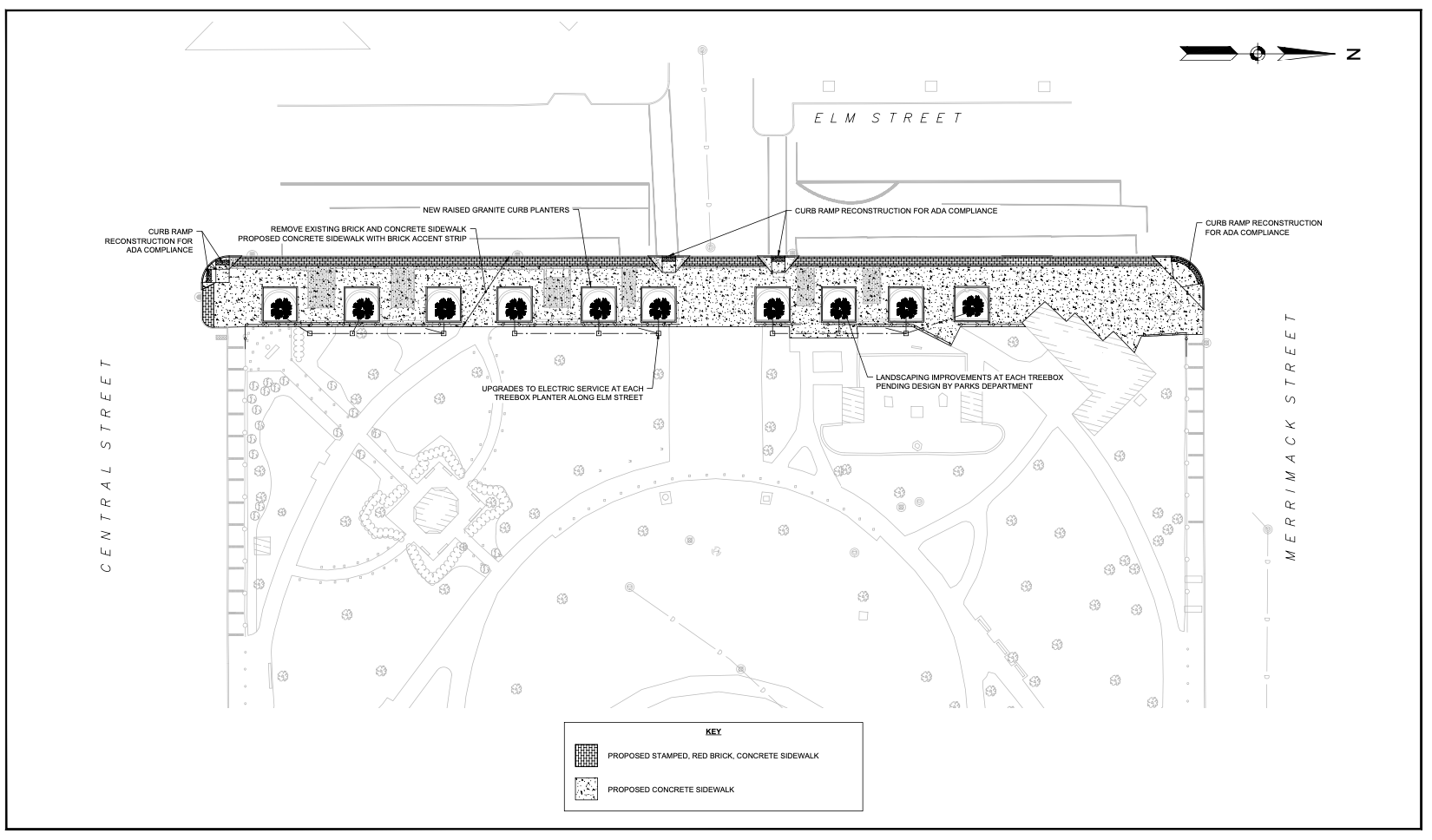 MANCHESTER, NH – The City of Manchester’s Department of Public Works (DPW) announced that construction of sidewalk improvements along Elm Street, from Central to Merrimack Street, adjacent to Veterans Memorial Park, will begin on March 24, 2025. The project will require partial sidewalk closures, with pedestrian detours in place throughout the construction period.