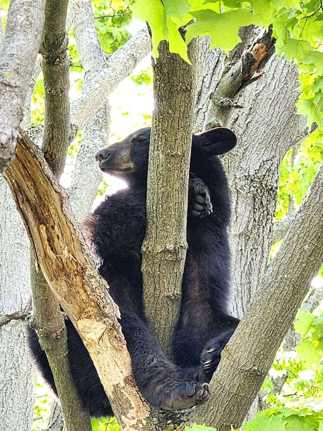 Earlier in the day the bear was spotted napping in a tree at an undisclosed location downtown, and photographer Jeff Hastings captured a beautiful shot. Hastings reported that NH Fish & Game were aware of the bear and were keeping an eye on it.