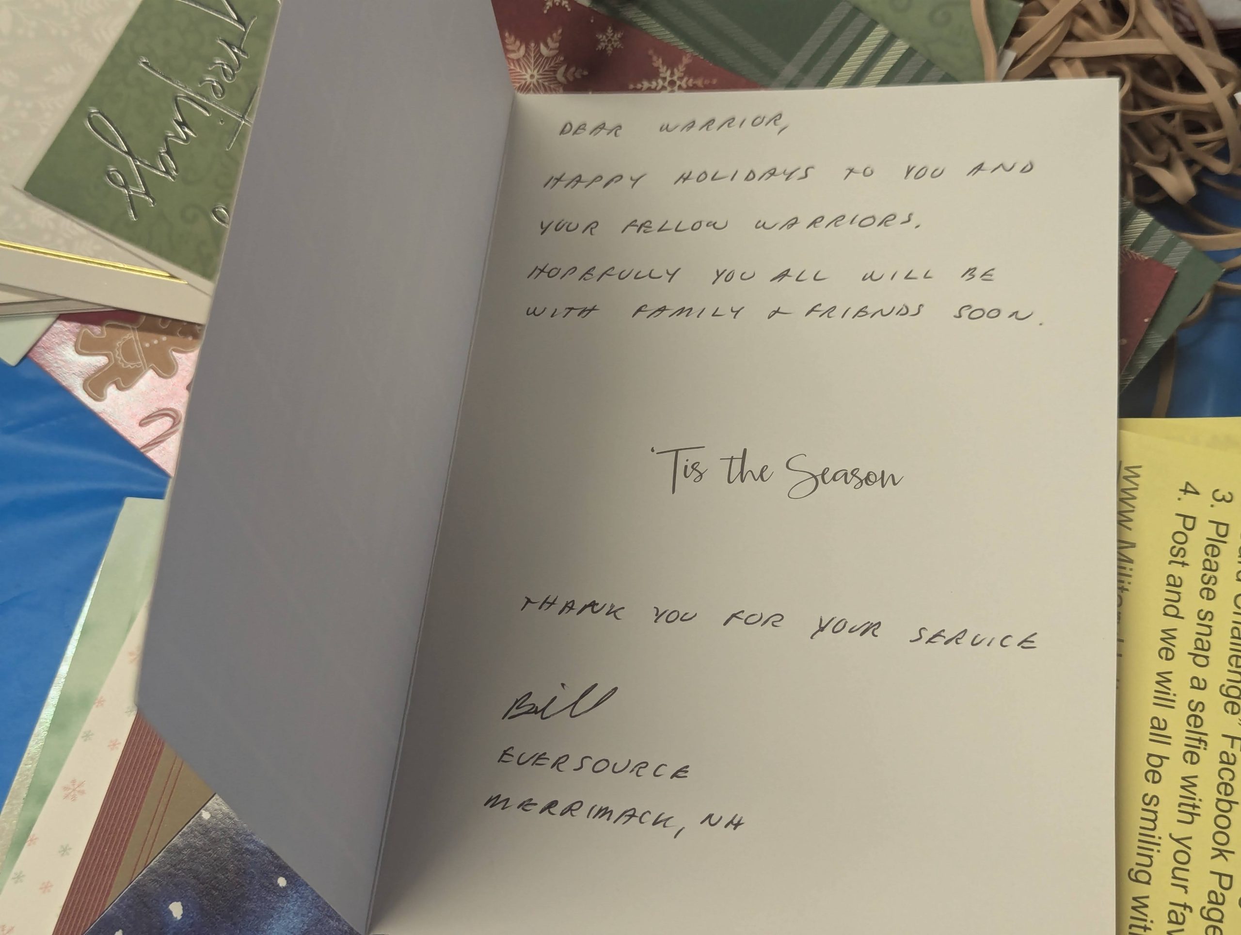 Holiday Cards for our Military Challenge has become a tradition here in New Hampshire. Started in 2003 by Dr. Laura Landerman-Garber, this is the 20th year that the community has come through with thousands of cards for those who serve and sacrifice – and who won’t be home for the holidays.