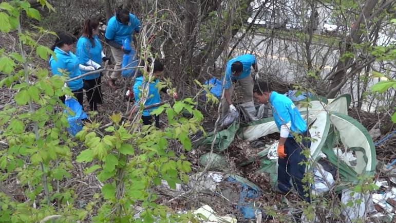MANCHESTER, NH โ As part of several clean-up projects this week (see below for more dates) throughout the city of Manchester, the ASEZ volunteer group took their cause to Allard Drive on May 5. About 50 students from Maine, Massachusetts and New Hampshire picked up trash along the roadside, and Mayor Joyce Craig pitched in, too. The group hopes to reduce crime by improving the environment. See what the volunteers found during their mission.