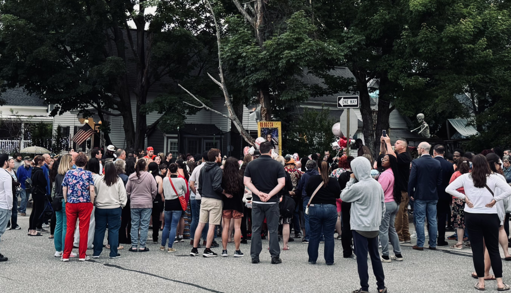 Manchester Police closed off several blocks around the vigil to allow the large crowd to gather safely. Among those attending the vigil was Mayor Jay Ruais and Manchester Police Chief Peter Marr, along with several police officers and member of the AMR ambulance crew who had responded to the initial call Thursday.