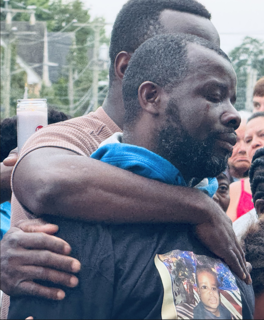 “The city will cry for you,” he said, speaking before a large photograph of his daughter. He acknowledged the more than 250 people who turned out for the vigil, saying “The love they show you, I’ve never seen so much love in my life.”