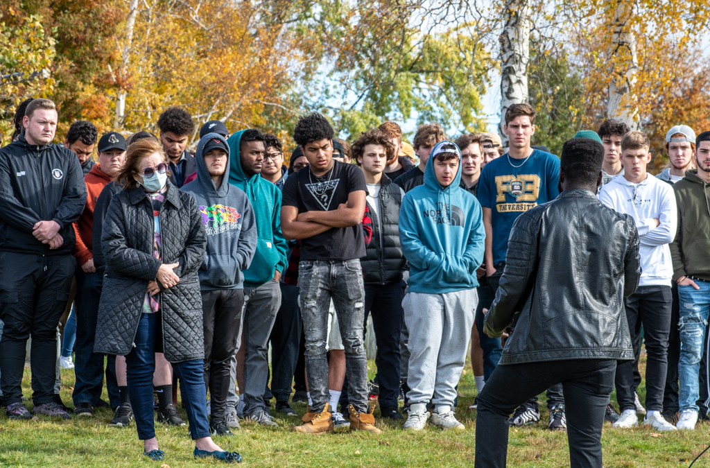 Teammates from Central’s soccer team took turns remembering Thamba Mbungu. Photo/Carol Robidoux