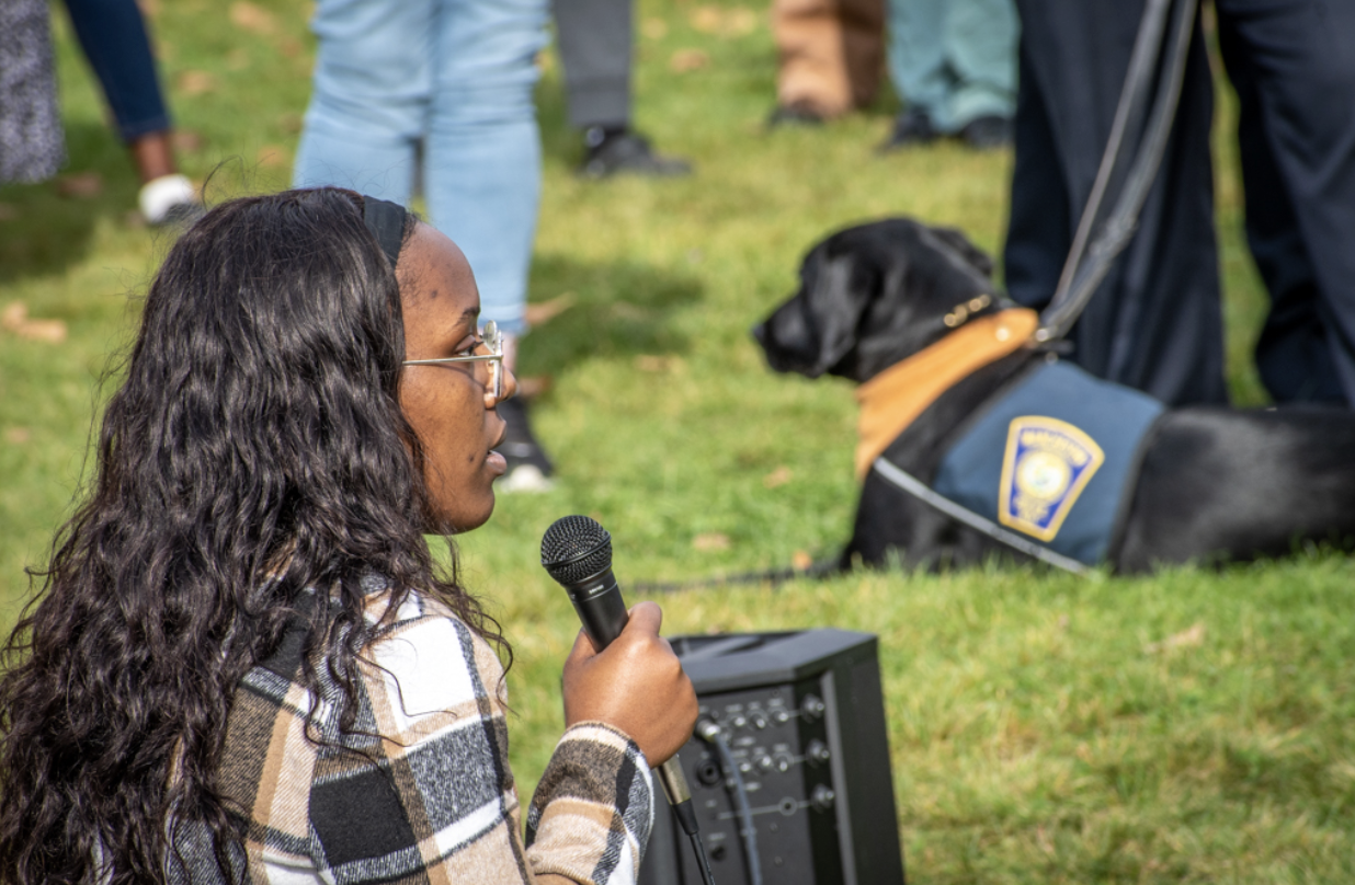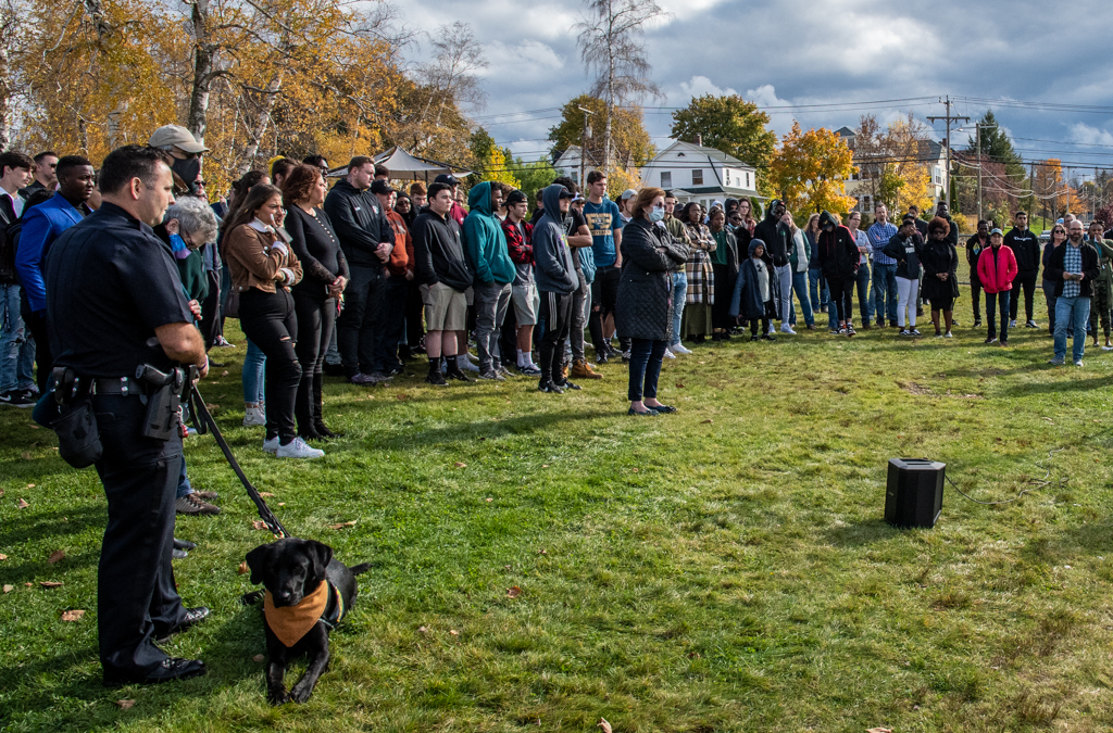 There was too much pain to go around, even with Manchester Police comfort dog Patch on the scene. A memorial gathering held at Derryfield Park Sunday for Central grad and soccer standout Thamba Mbungu drew well over 100 people to pay respects. Photo/Jeffrey Hastings