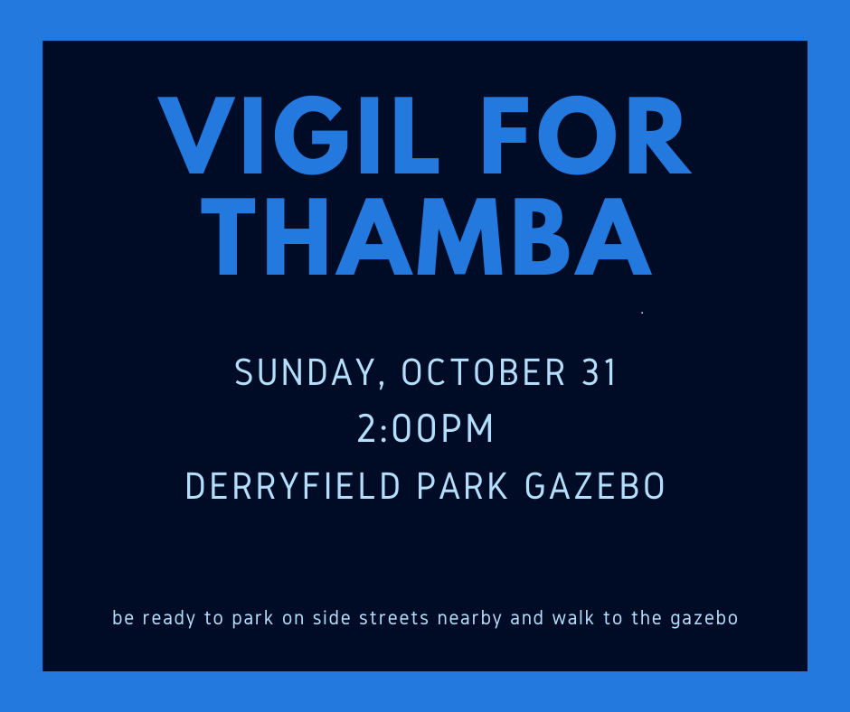 MANCHESTER, NH โ A vigil honoring the life of Thamba Mbungu has been planned for Oct. 31 at 2 p.m. at the gazebo at Derryfield Park.