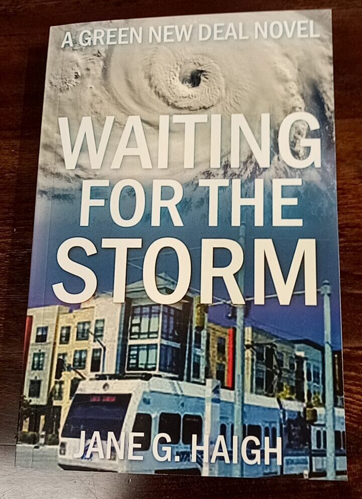 Just writing about the utopia wasn’t enough, however. She needed a plot. She wondered about the hurricane in Providence, RI, in 1938 and tried to imagine where NH would be, 102 years later in the year 2040, if another such hurricane threatened New England again. She called her book Waiting for the Storm.
