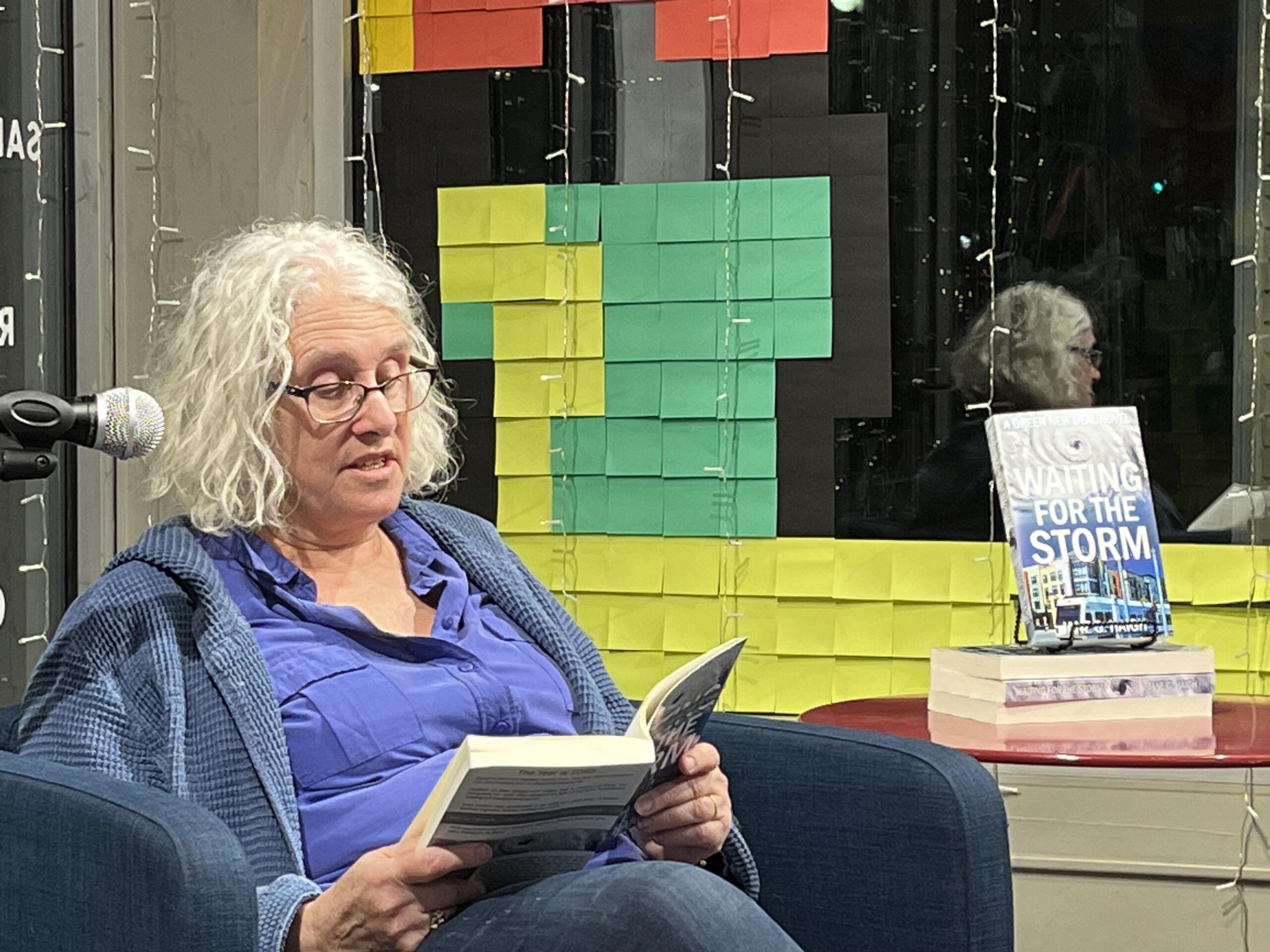 Local author Jane Haigh reads from her novel, “Waiting for the Storm” at a book-signing at the Bookery on March 2, 2023. Photo/Vanessa Blais
