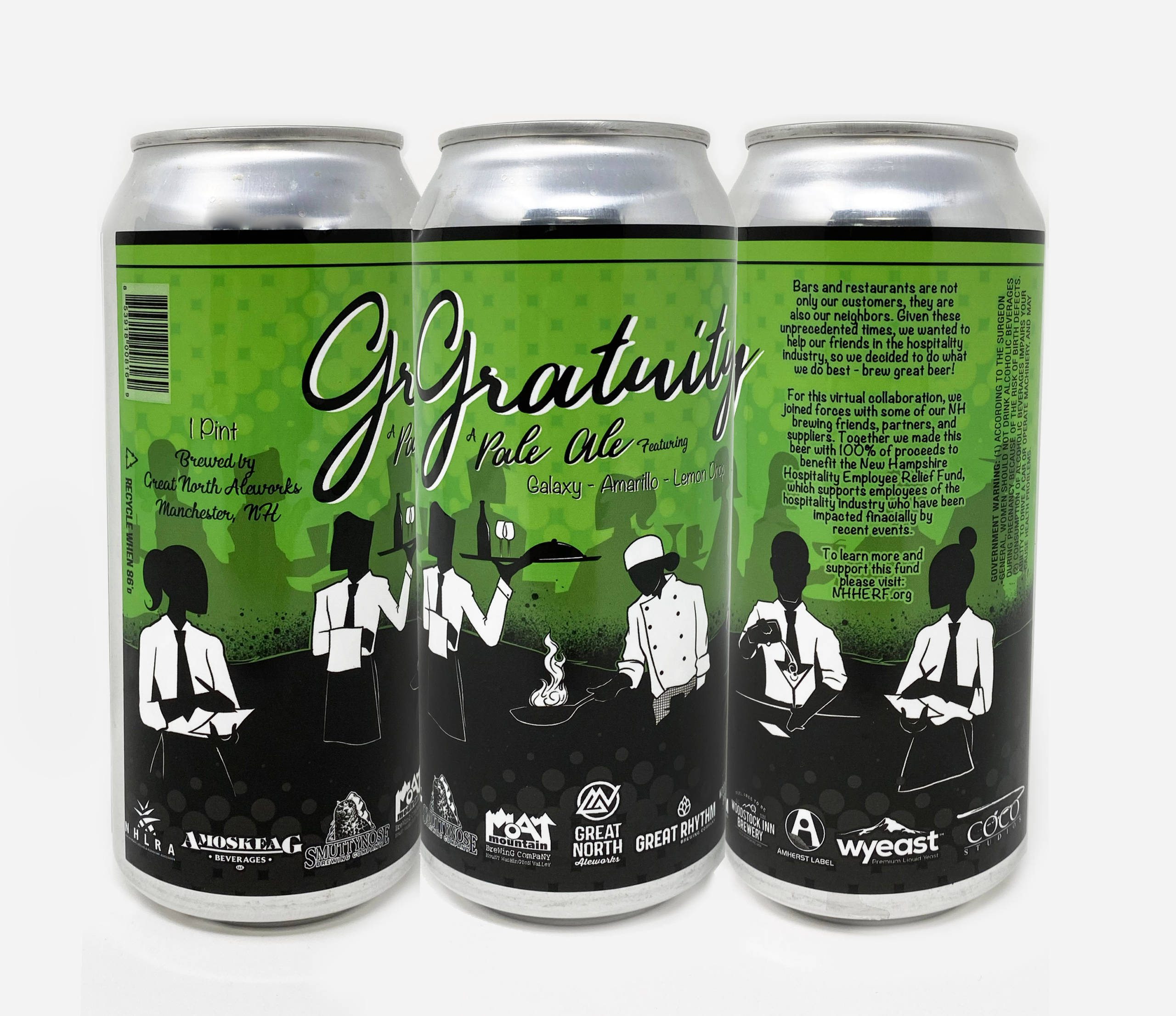 One-hundred percent of the proceeds from this beer will be donated to the NHHERF so they can continue supporting employees of the hospitality industry who have been impacted by COVID-19. The collaboration is a Pale Ale named Gratuity featuring Galaxy, Amarillo and Lemon Drop hops.
