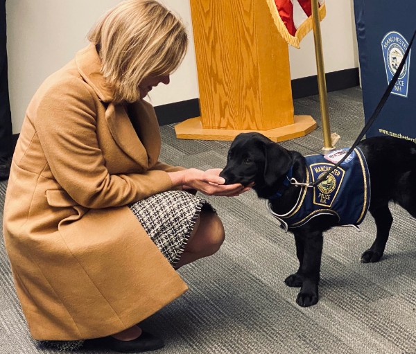“It’s an exciting opportunity for the city to have the puppy here at the Manchester Police Department,” she said. “Once the dog is here on a permanent basis, they can bring it out to meet with seniors, students. It’s really an exciting opportunity to bring people together.”