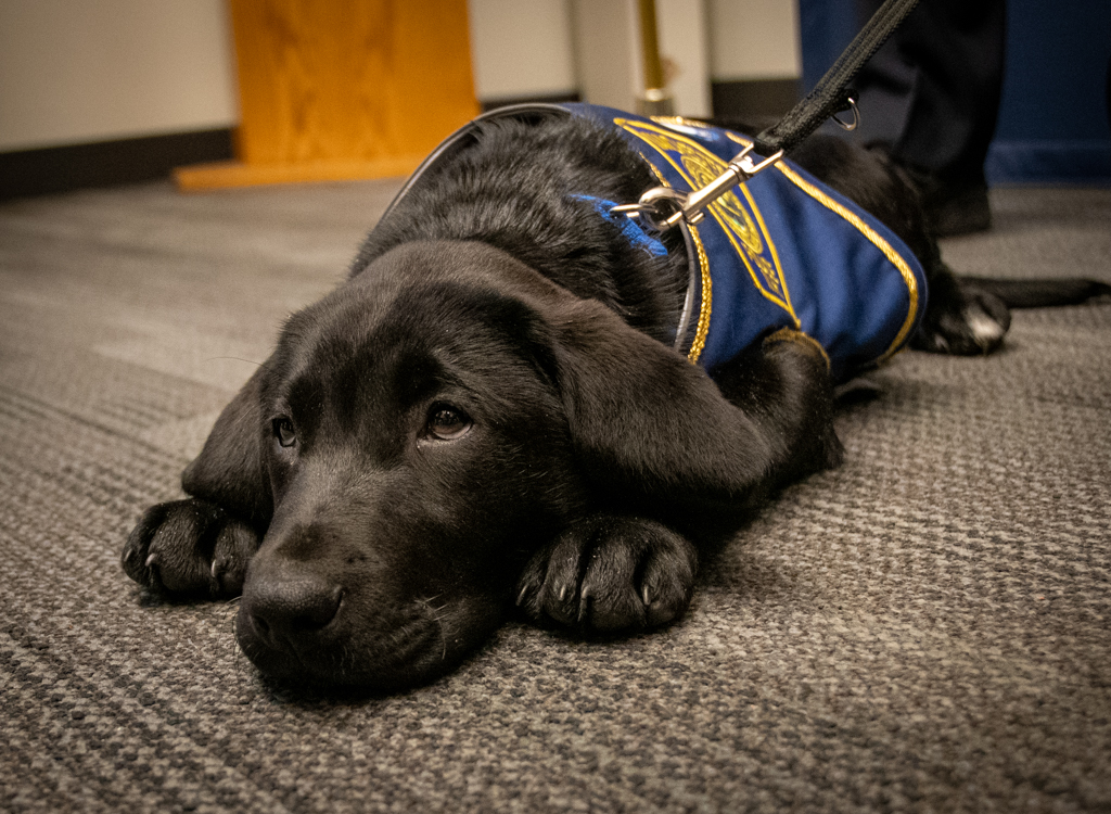 Barker said a comfort dog in a police department needs to know how to react in various environments including responding to sirens, crisis situations and being in buildings that are not controlled environments.