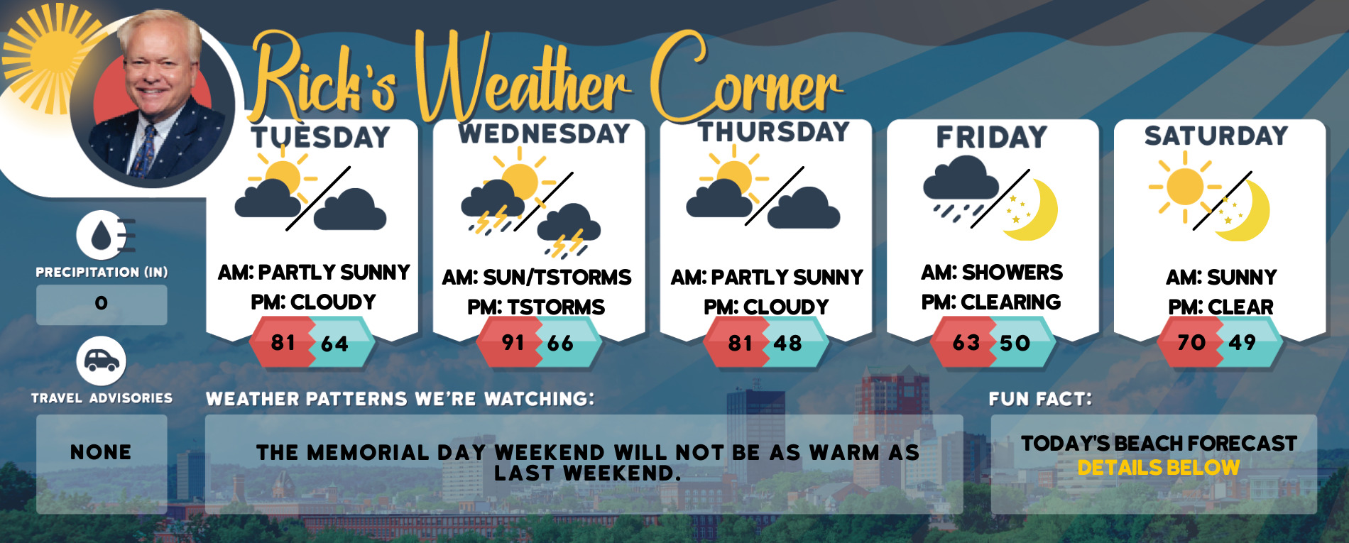 The Memorial Day weekend will not be as warm as last weekend.