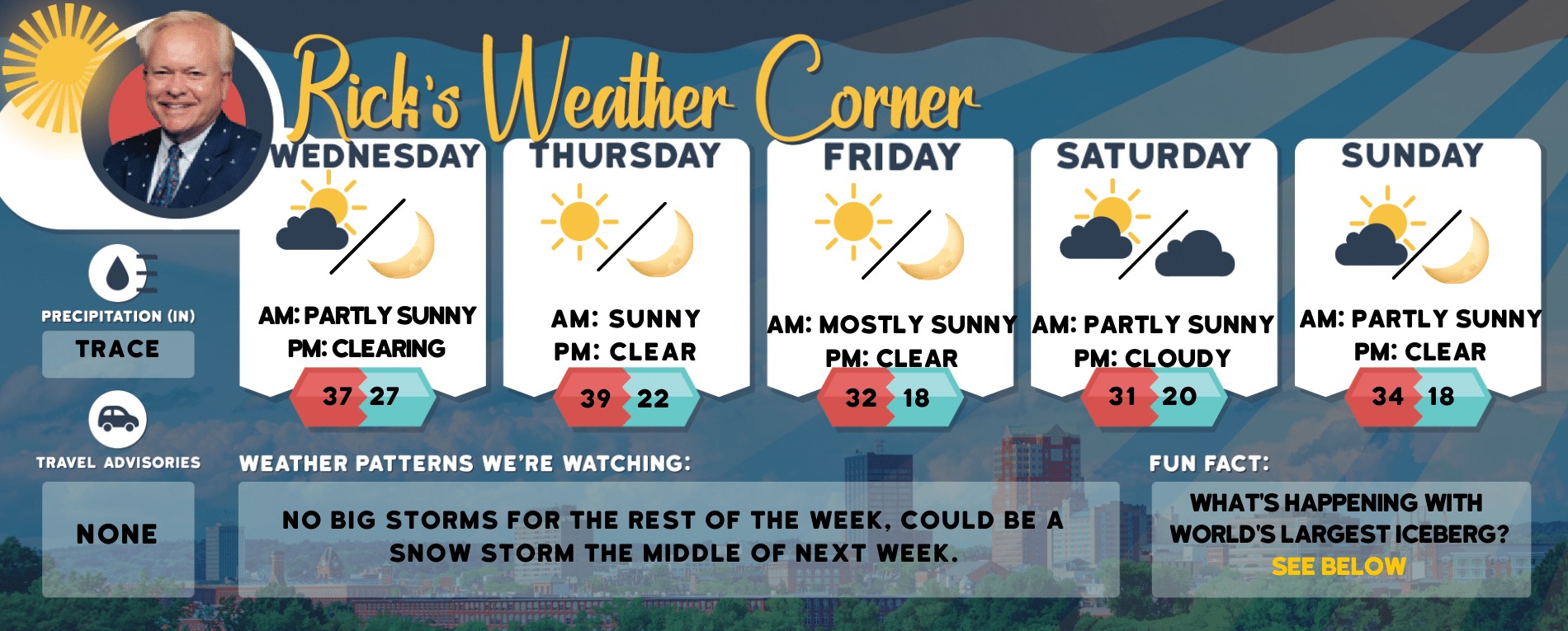 Thursday: Sunny & breezy High 39 (Feel like 28) Winds: NW 10-15+ mph