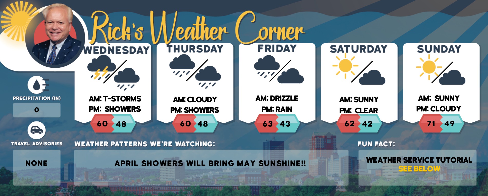 May Day: Mostly sunny & breezy High 62 Winds: NW 15-20+ mph