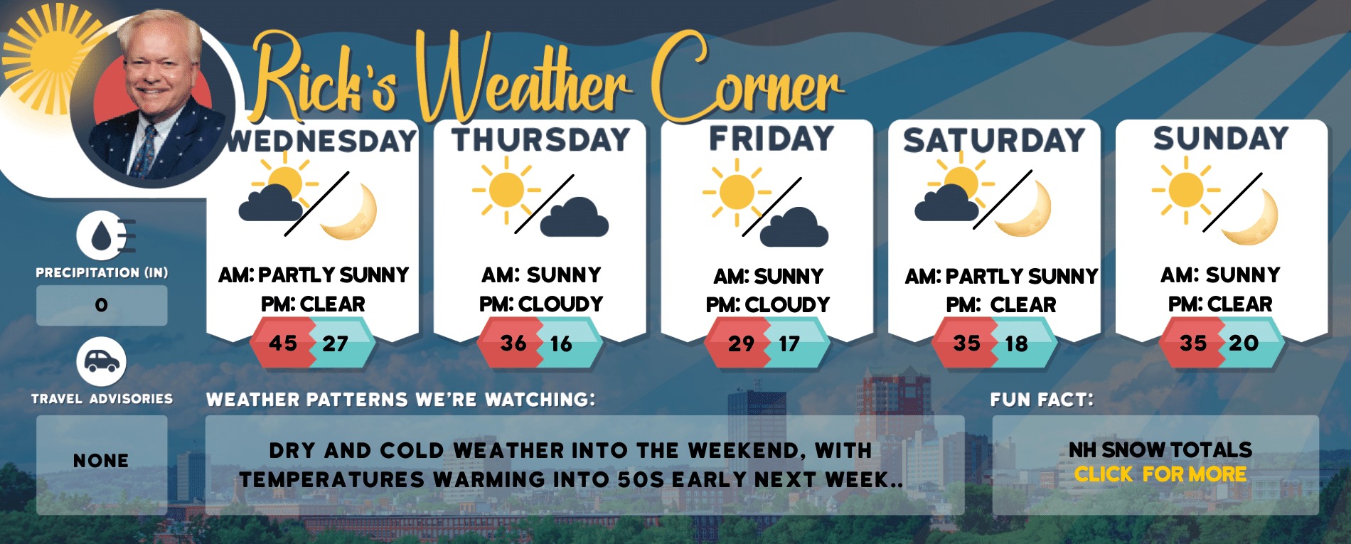 The Windy.com interactive graphic above allows you to zoom in and out, fast-forward to see the futurecast, and check on various weather patterns here in NH and around the country. Select from menu in the top right corner.
