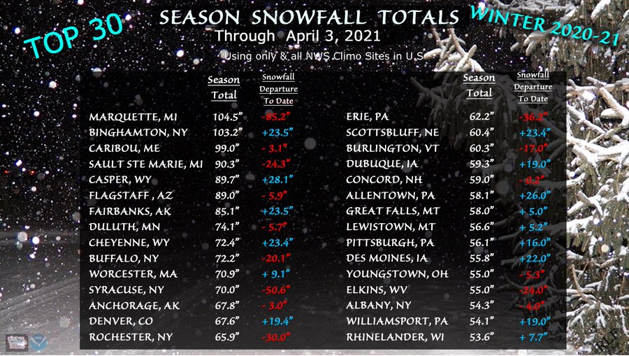 The final top 30 snowfall totals.