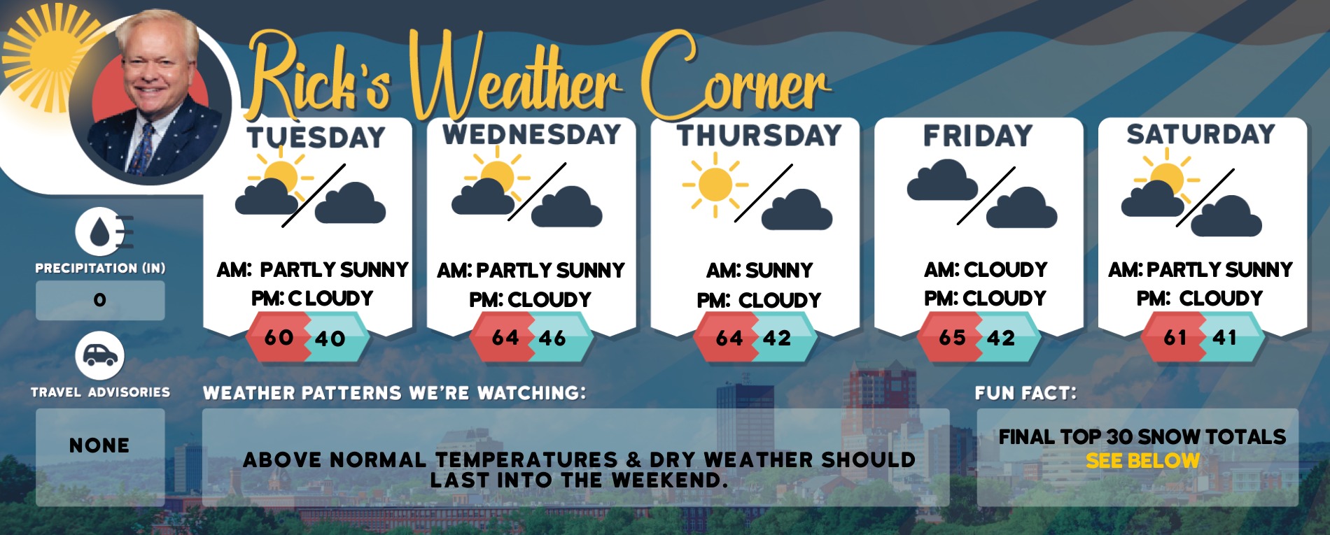 Above normal temperatures & dry weather should last into the weekend.