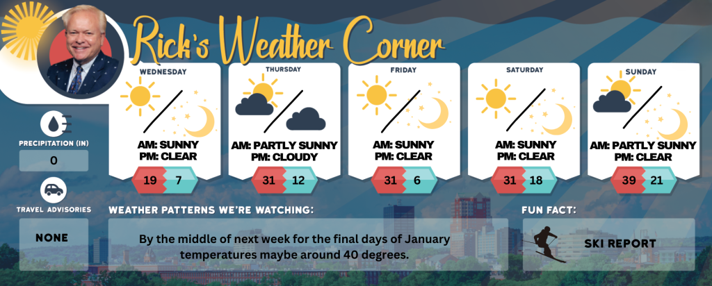 By the middle of next week for the final days of January temperatures maybe around 40 degrees.