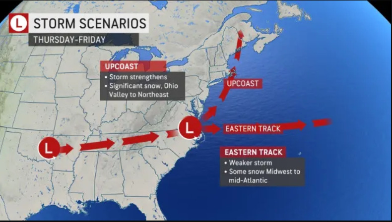Two storm scenarios late Thursday night into Friday