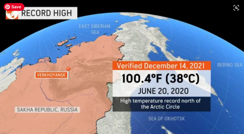 On Tuesday, the World Meteorological Organization (WMO), the official weather agency of the United Nations, announced that it had verified that the high temperature in the town of Verkhoyansk, Russia, on June 20, 2020, climbed to 100.4 degrees Fahrenheit (38 degrees Celsius). Temperatures typically top out around 60 F (15.5 C) by mid-June in Verkhoyansk, a town located 71 miles (115 km) north of the Arctic Circle. The town’s meteorological observation station has been in operation for more than 135 years, dating back to 1885.