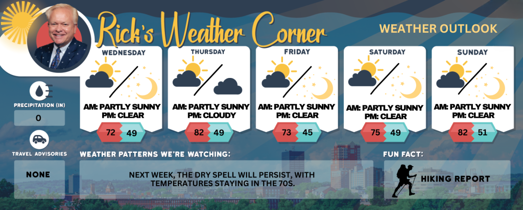 Next week, the dry spell will persist, with temperatures staying in the 70s.