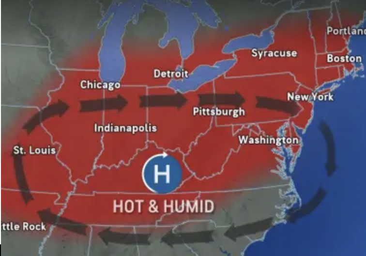 Heat & Humitidy Expand Northeastward Thurs.- Friday