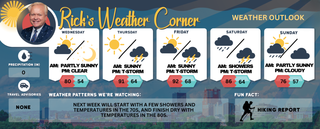 Wednesday’s weather: Sunny hot and humid, high of 91