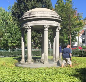 The next report was taken by Officer Aaron Stone of the Patrol Division, who responded to Wagner Park, located at 242 Myrtle St., at 10:30 a.m. Saturday after a man walking his dog contacted police. The witness stated the graffiti must have occurred during the overnight hours because he spent time at the park on October 26 and did not observe any mischief. Trash receptacles were overturned and random lines of spray paint were located in several areas, to include a painted swastika on the floor of the gazebo.