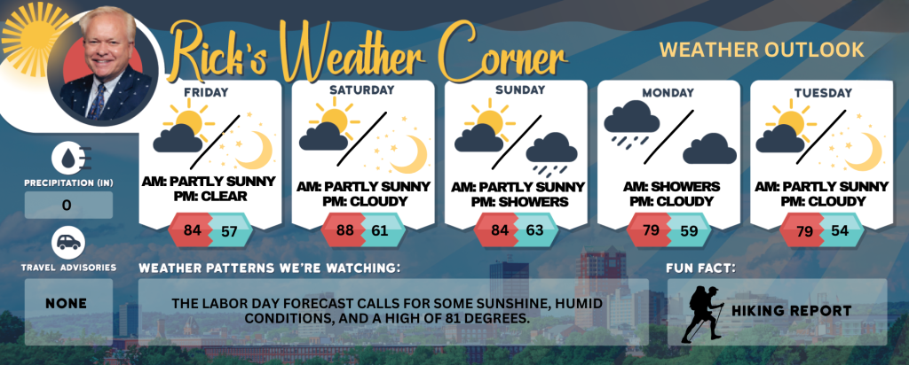 The Labor Day forecast calls for some sunshine, humid conditions, and a high of 81 degrees.