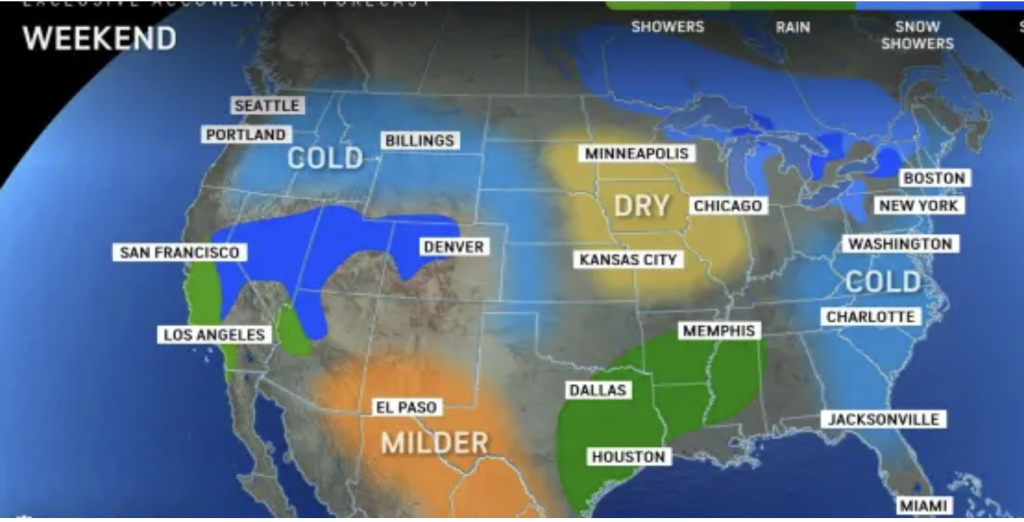 The core of the Siberian air mass will move northeastward and drift away from North America today and into this weekend. As a result, temperatures will gradually rise closer to seasonal averages throughout the weekend, with mostly dry conditions expected. There may be a few light snow flurries in the mountains and far north, but overall, the pattern will remain calm. For much of next week, no major storm systems are anticipated, and temperatures will continue to be seasonably cool.