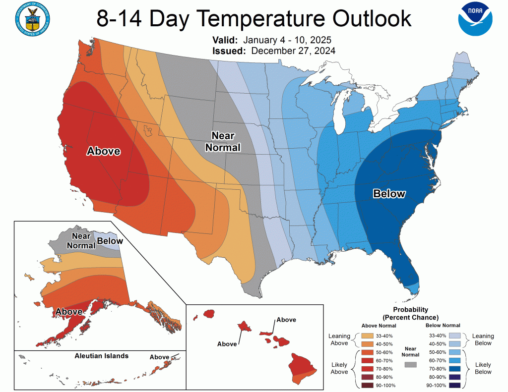 The first weekend in January will be colder than normal with the chance of some snow possible the following week.
