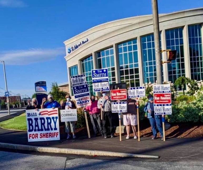 MANCHESTER, NH — West Side Democratic Candidates had their first of the Season SignWave Aug. 21 at McGregor Square. Bright and early we gathered, masked-up, to greet drivers as they went off to work. Though this year there were less vehicle traffic — due to working at home and no school — we had a good time to chat about the recent Democratic Convention.