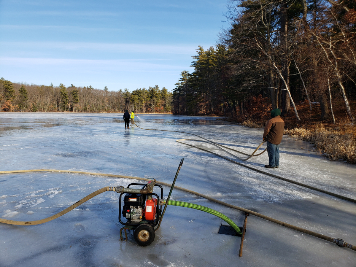 Recently, chilly and mostly dry weather has allowed us to open Dorrs Pond for ice skating al fresco.