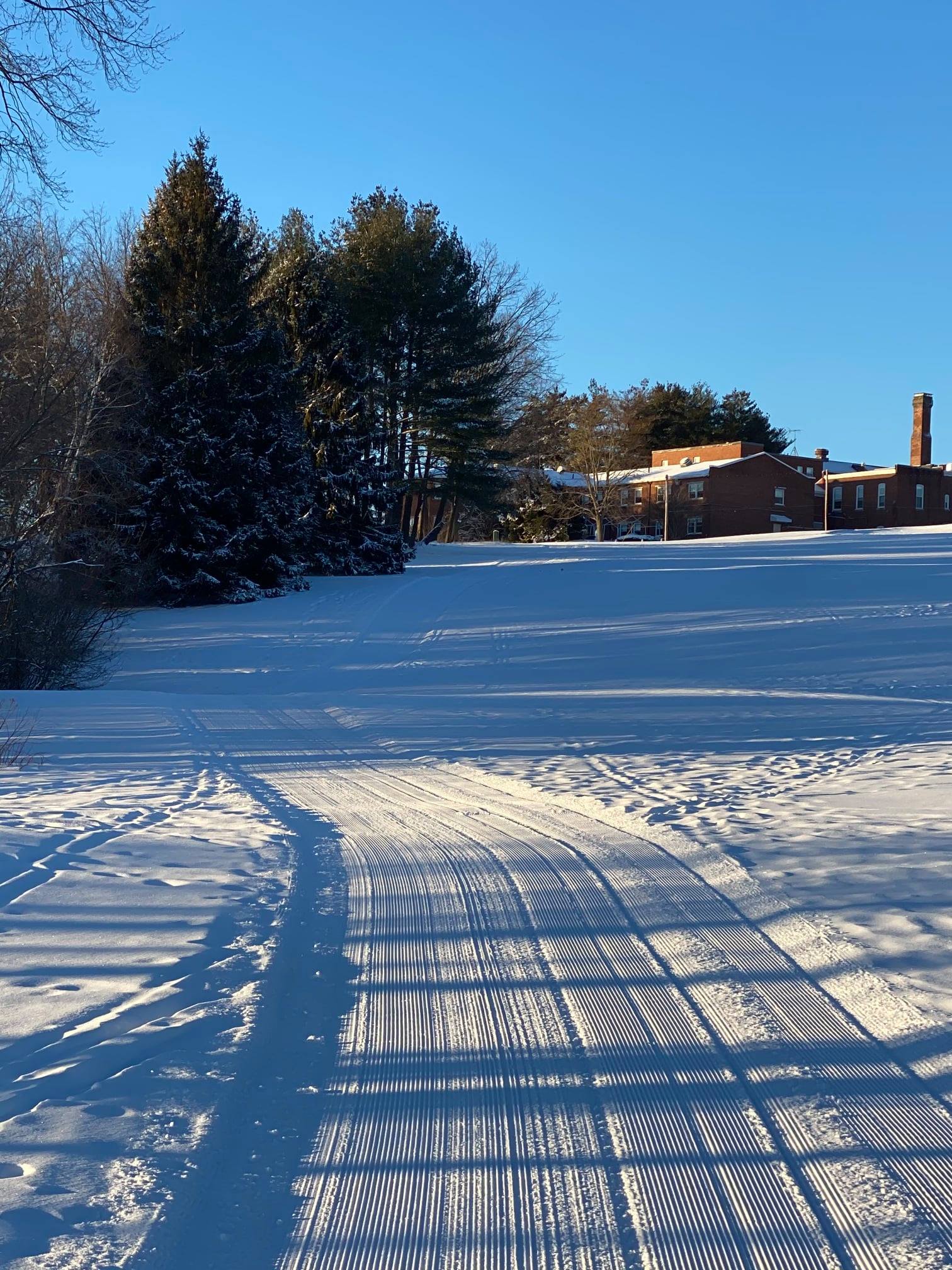 When it snows, keep an eye on our Facebook page for announcements about grooming the cross country skiing trails at Derryfield Country Club. Pictured here is the trail created after the snow arrived in December.