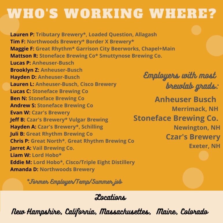 Later this year Parker plans to attend the CBC, or Craft Brewers Conference, held this year in Nashville, to rekindle connections with other brewers and instructors around the region and country. She says that probably about 50 other universities have programs similar to UNH’s.