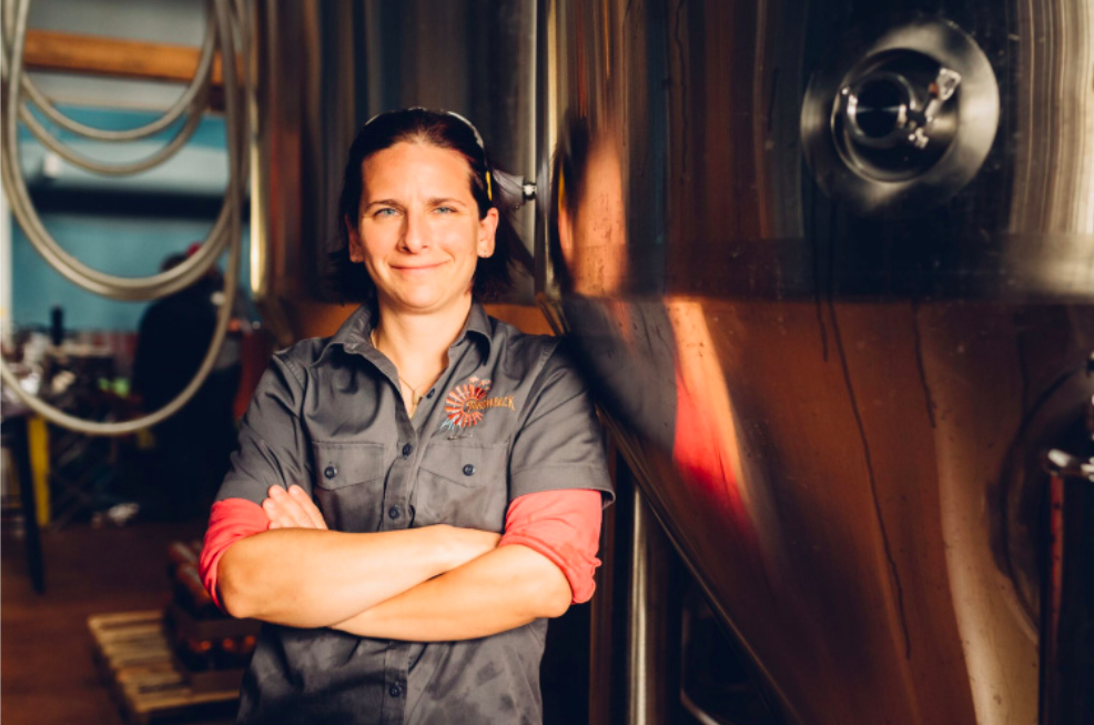 Returning to New England gave her the opportunity to work at Throwback Brewery in North Hampton starting in 2014. The founders describe her impact as “profound” and credit her with “well-documented brewing and packaging standard operating procedures, a robust safety plan, happy farmersโ market customers,” and sprinkling darkly humorous signs around the brewery. Today their website still lists her in the team section as “Brewer Emeritus.” She also discovered the long hours that can come with craft brewing, and the physical labor of lifting heavy bags of grain over your head to dump into a large mill.