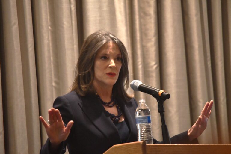 Williamson: The biggest threat to democracy is people staying home and not voting. There will be people who vote for Donald Trump no matter what he does and those voters must be countered. While Congress says they are the only ones that can address America’s problems, the issue is not a “lack of car mechanics” but “going down the wrong road.” The true threat is attacks on the middle class.