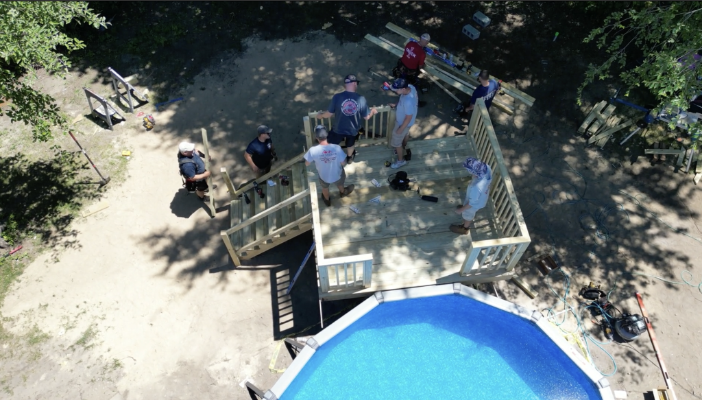 Off-duty firefighters came together to upgrade the experience, built a deck on the side of the pool, and provided the electricity needed for the mechanical parts of the pool.