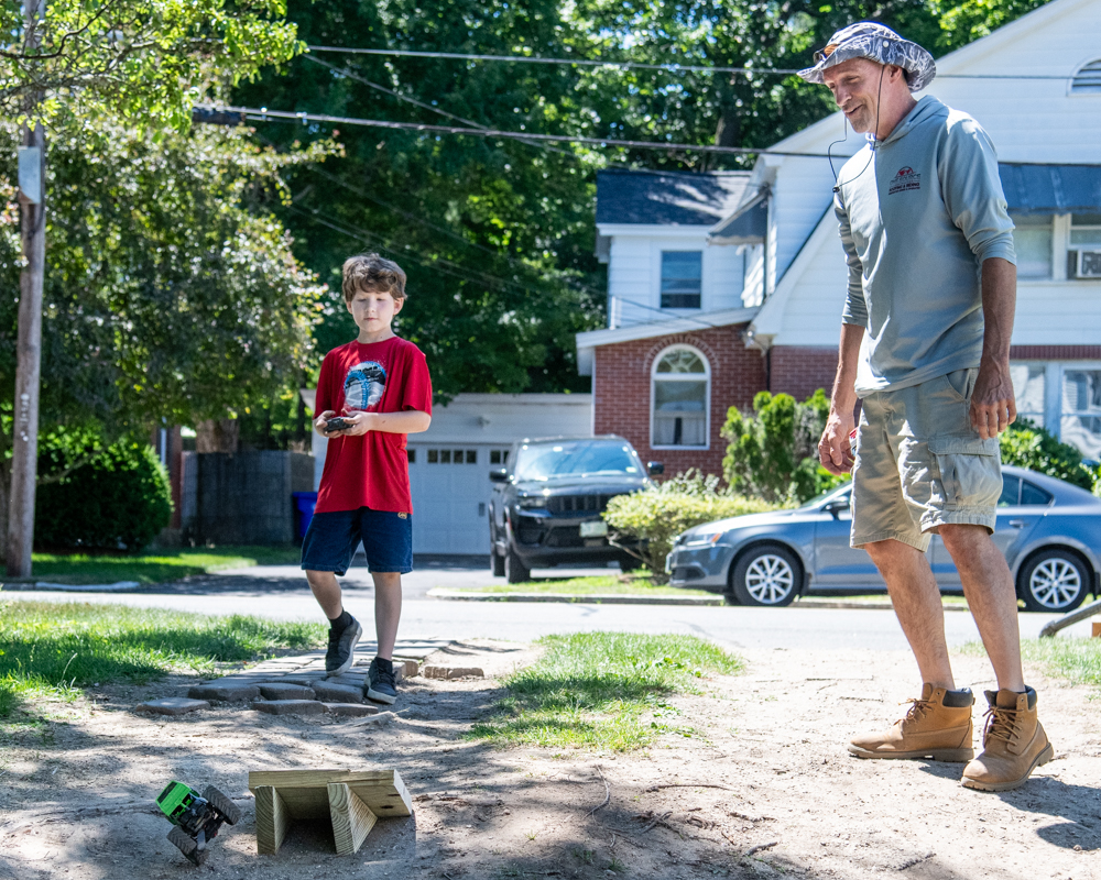 Firefighter Mike Meehan, a licensed electrician, donated all the electrical services for the installation at the house.