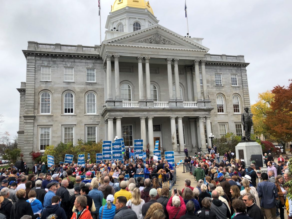 The Democrat brought a few hundred friends with him and held a rally after on the State House lawn.