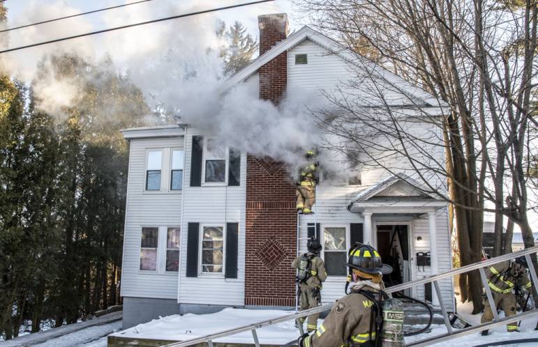 Manchester firefighters responded to a report of a fire on the second floor of 625 Amherst St. on Feb. 19. Smoke was showing from the second-floor windows as firefighters made entry into the residence.