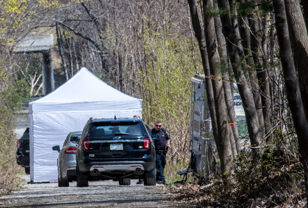 Police at the scene of the investigation off Candia Road on April 23, 2021. Photo/Jeffrey Hastings