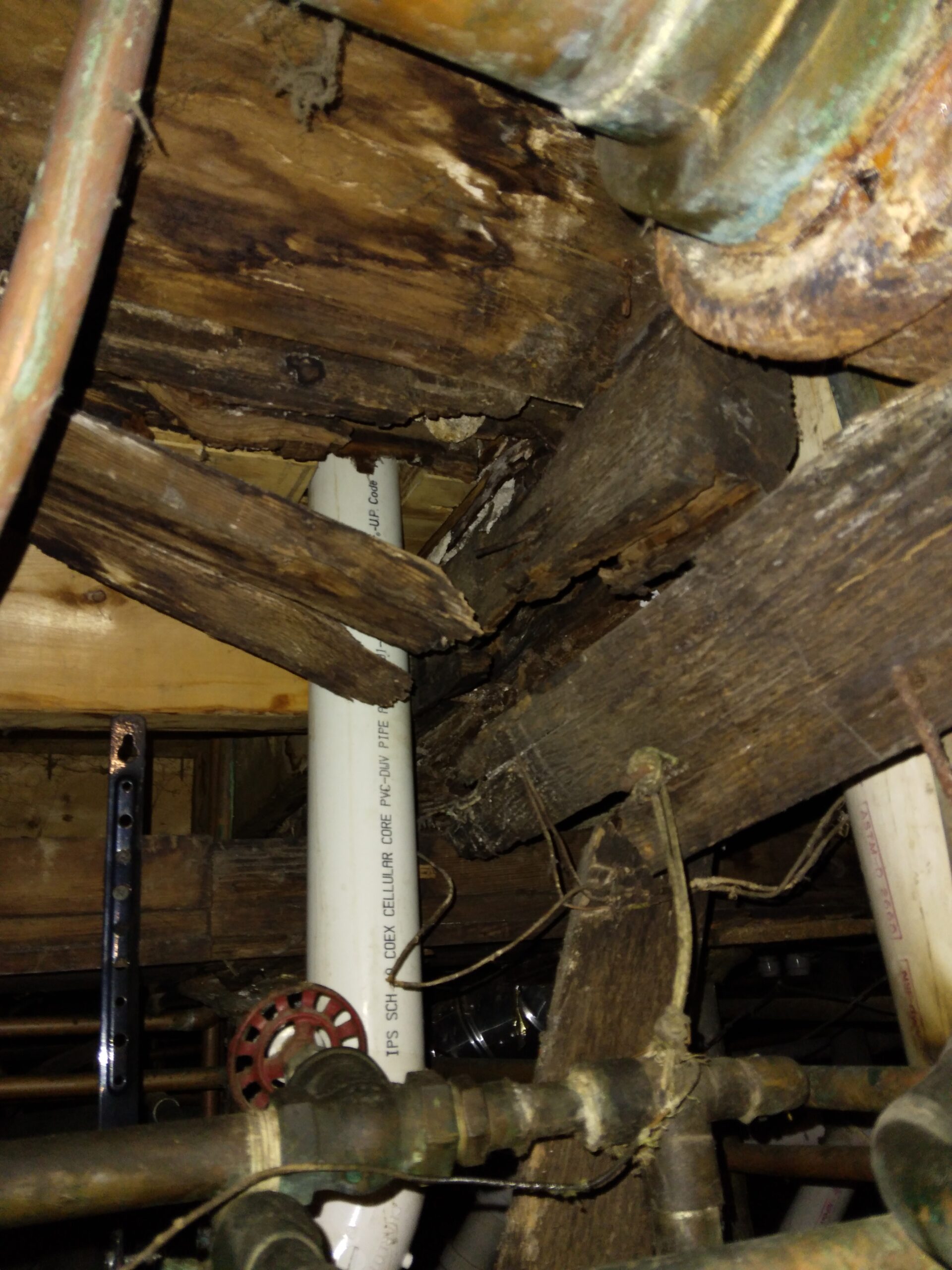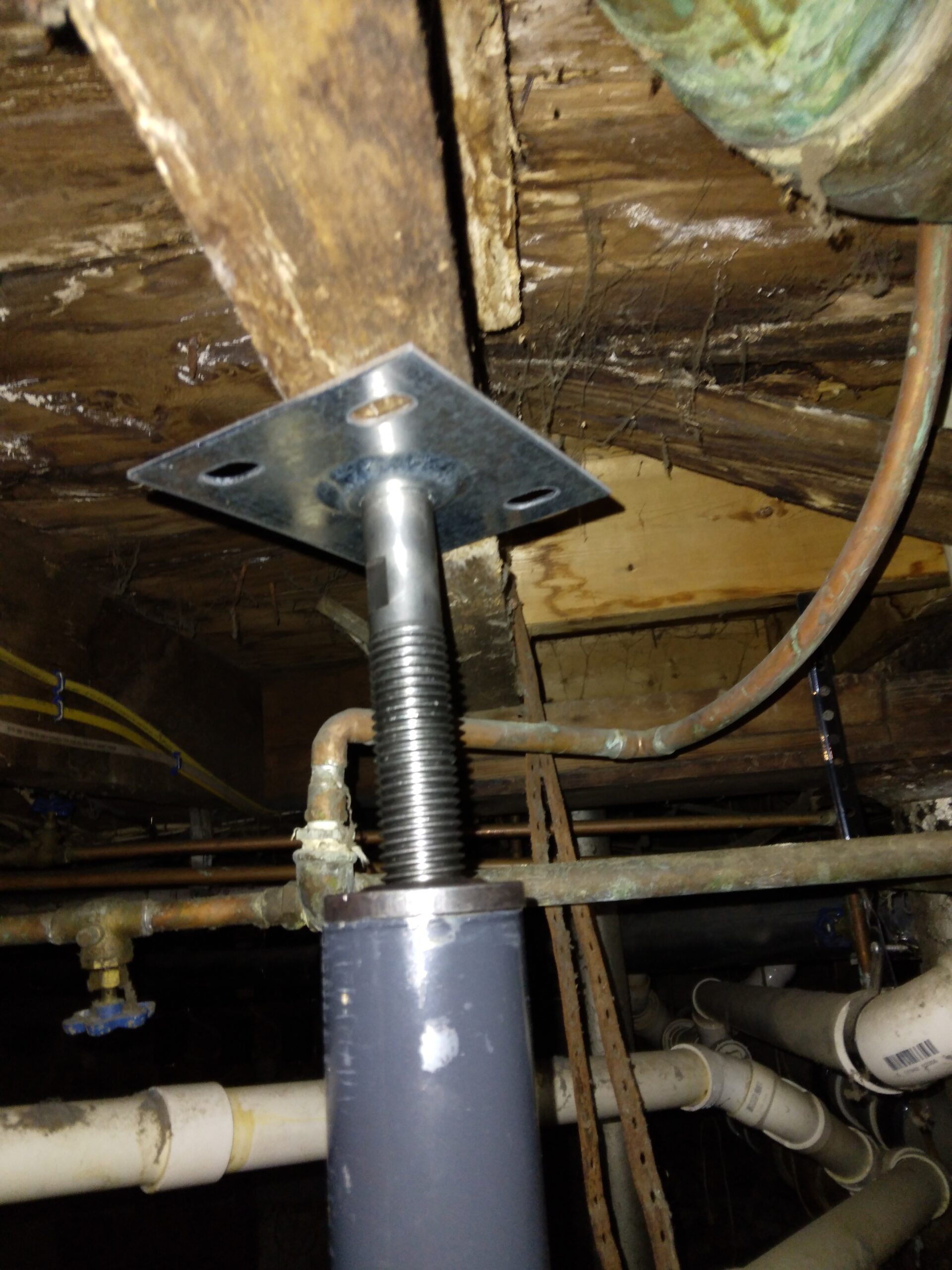 She noticed recently, that she had to shimmy the shelves more often so she went down into the basement to see if there was a problem. She found the main structural beam to the six-unit apartment building broken in half.