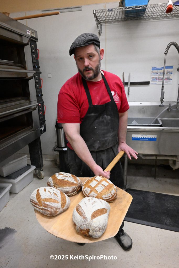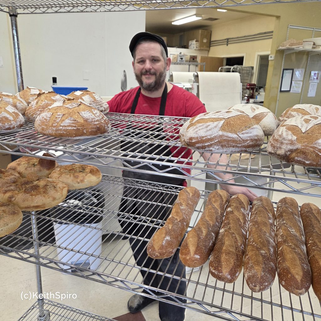 In 2024, I discovered his products at the Concord farmerโs market where I met his greatest cheerleader โ his mom.ย Through summer and winter markets, she has been there on Saturday mornings along with his dad extolling the quality, variety, and love that goes into every offering from Woodman’s Artisan Bakery.ย As I am not a “plastic bag of bread” kind of guy, I inquired as to the source location and asked for the opportunity to see the bakers in action.