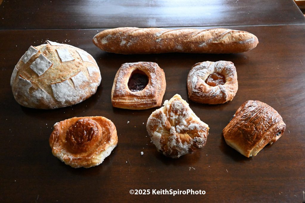 Woodman went to SNHU to study culinary arts and came away with a passion for soft wheat flour similar to what is found in France rather than the hard wheat so often used here. The difference in texture and taste are immediately apparent. Less so, the proper handling of bread fresh from the oven. Sourdough and other loaves need time to cool before they can be sliced or even packaged. Hannah made sure I knew not to fully close the paper bag and allow an hour or two before trying to slice the loaves we brought home.
